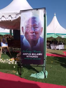 The county government delegation, led by Waziri Generali Fredrick Kimanga, stood with the family of the loate Mzee Justus Mulaimu Kithungu in honoring his legacy, describing him as a man whose contribution to community development will be remembered for generations.